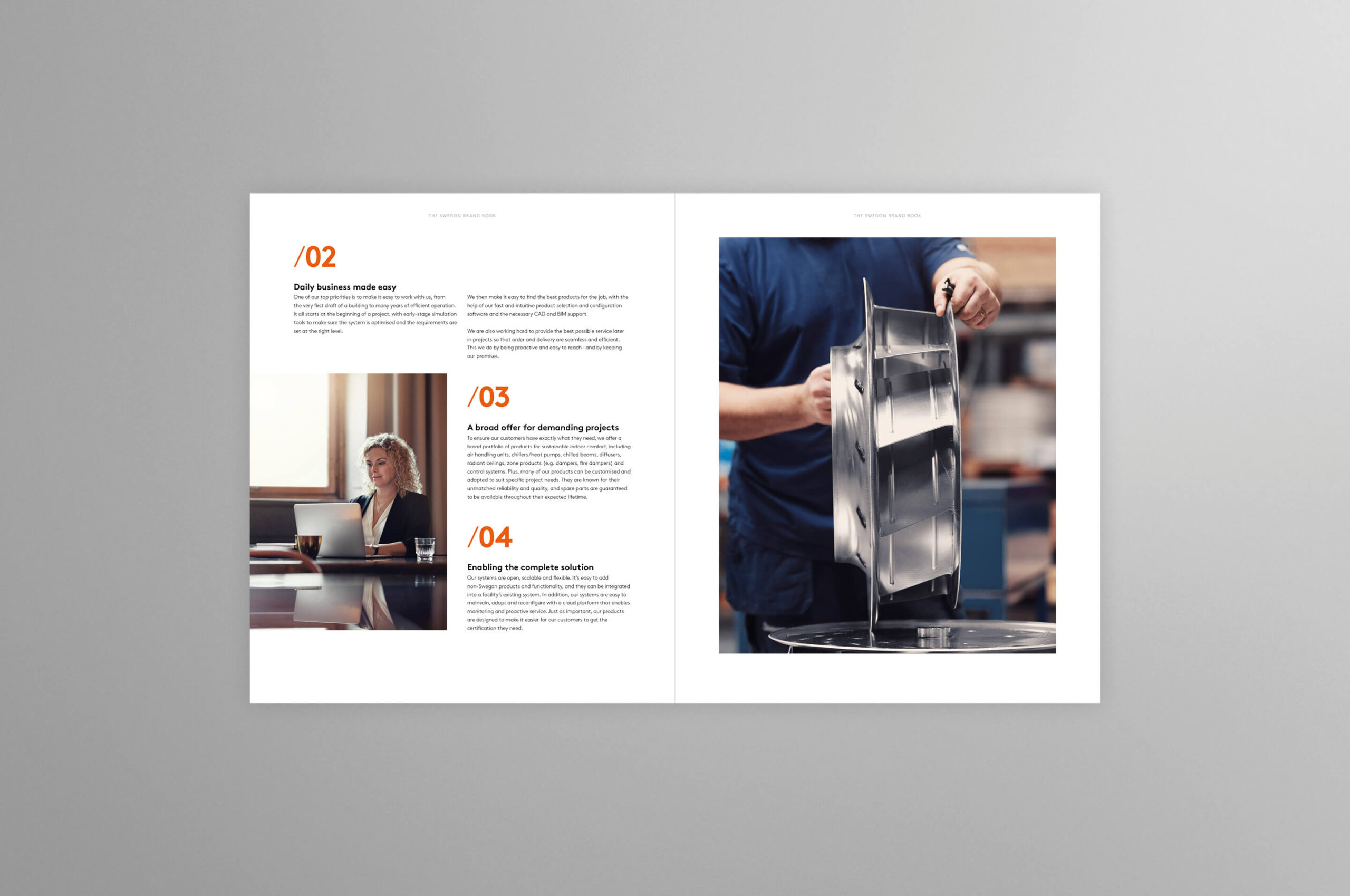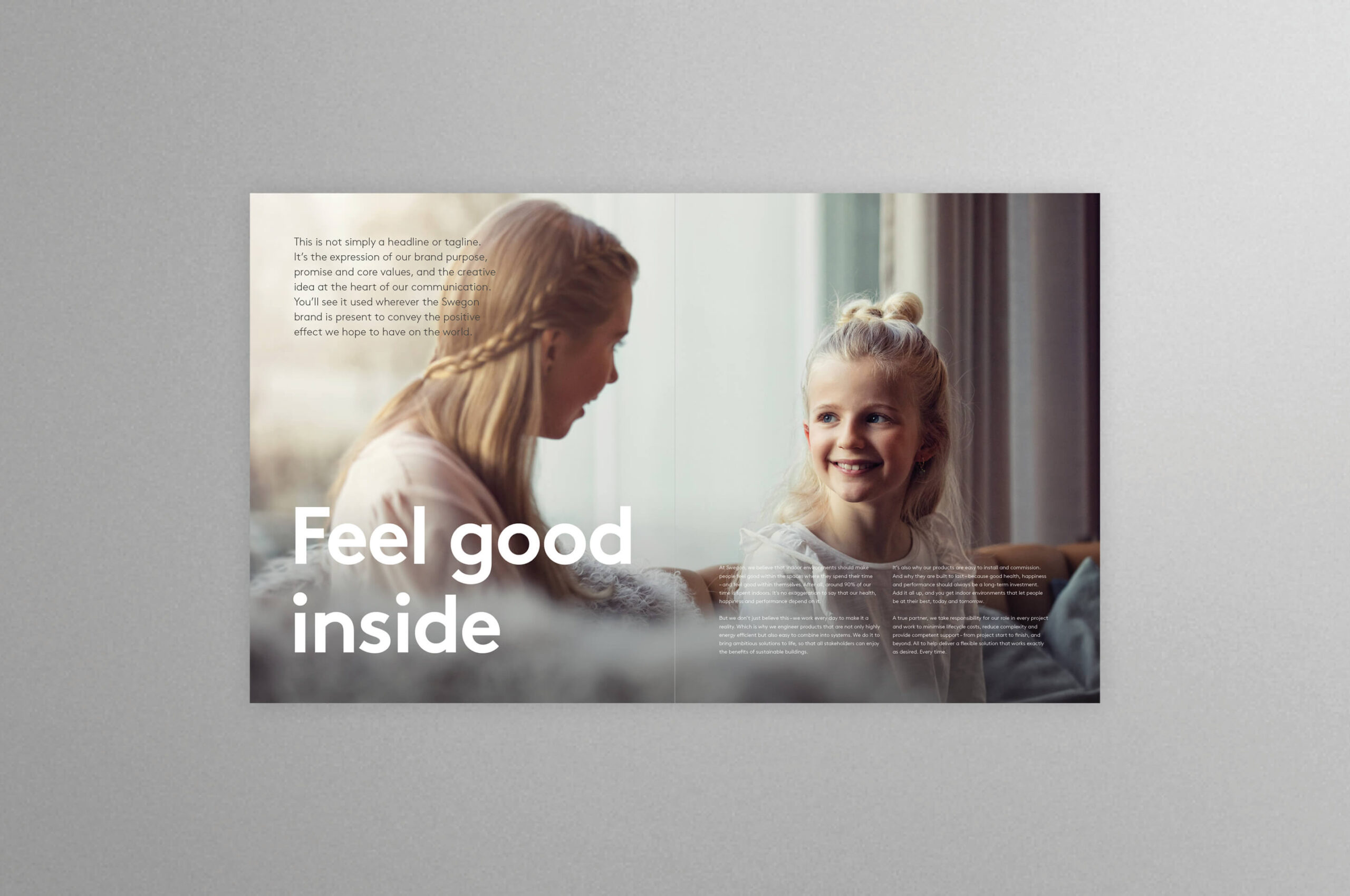 A premium brand book in perfect alignment with the premium Swegon brand. Page by page, the inviting copy and images worked together to tell the company’s brand story and bring our creative concept, “feel good inside,” to life.